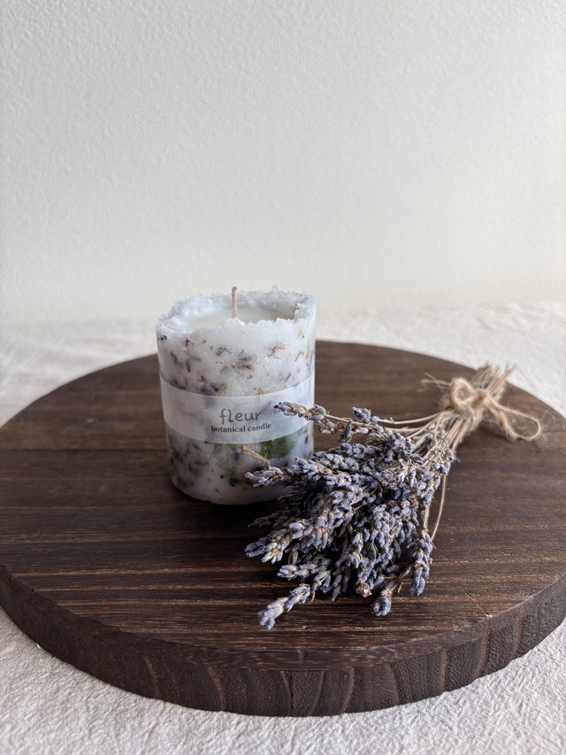 商品名:Herb candle③(ラベンダーの香り) 優しい香りとともに、心がほっと解けるような時間を。 自分の畑で育てたラベンダーと、爽やかなローズマリーを散りばめたナチュラルな香りのボタニカルキャンドルです。 自然のままの姿を活かし、一つひとつ丁寧に手作りをしています。灯すと内側からほのかに透けて、ドライハーブの影が優しく揺らぎます。 ラベンダーの香りが穏やかに広がり、1日の終わりに安らぎを届けてくれます。 インテリアとして飾るだけでも、優しい存在感。贈り物やおうち時間の癒しにもおすすめです。 ■ 商品の特徴 6cm×高さ7cm 外側パラフィンワックス 内側ソイワックス(大豆由来) ラベンダーの香り ■ 燃焼時間 約30時間 1回の使用は1〜2時間まで 中心部だけ溶けていき、外側のハーブの層は残ります。 天然素材を使用したこのキャンドルは、ススも出にくく環境に配慮した製品です。ラベンダーの穏やかな香り心地よいリラックスタイムを提供します。 ◾️細かいハーブを散りばめたデザインです。 ◾️発送・到着について ご入金から5日ほどお時間がかかります。