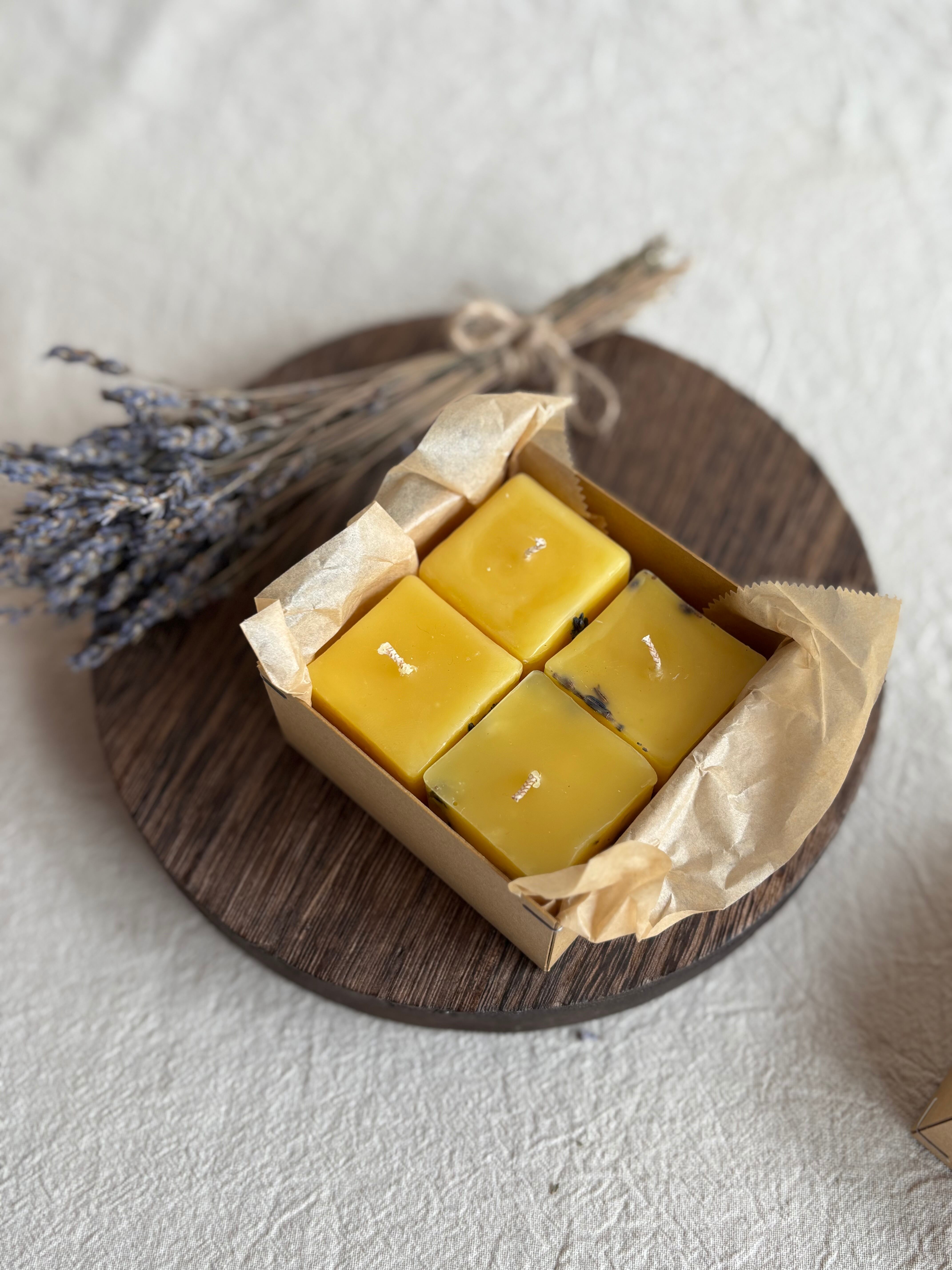 自然からの贈り物 みつろうのキューブキャンドル(4個セット)