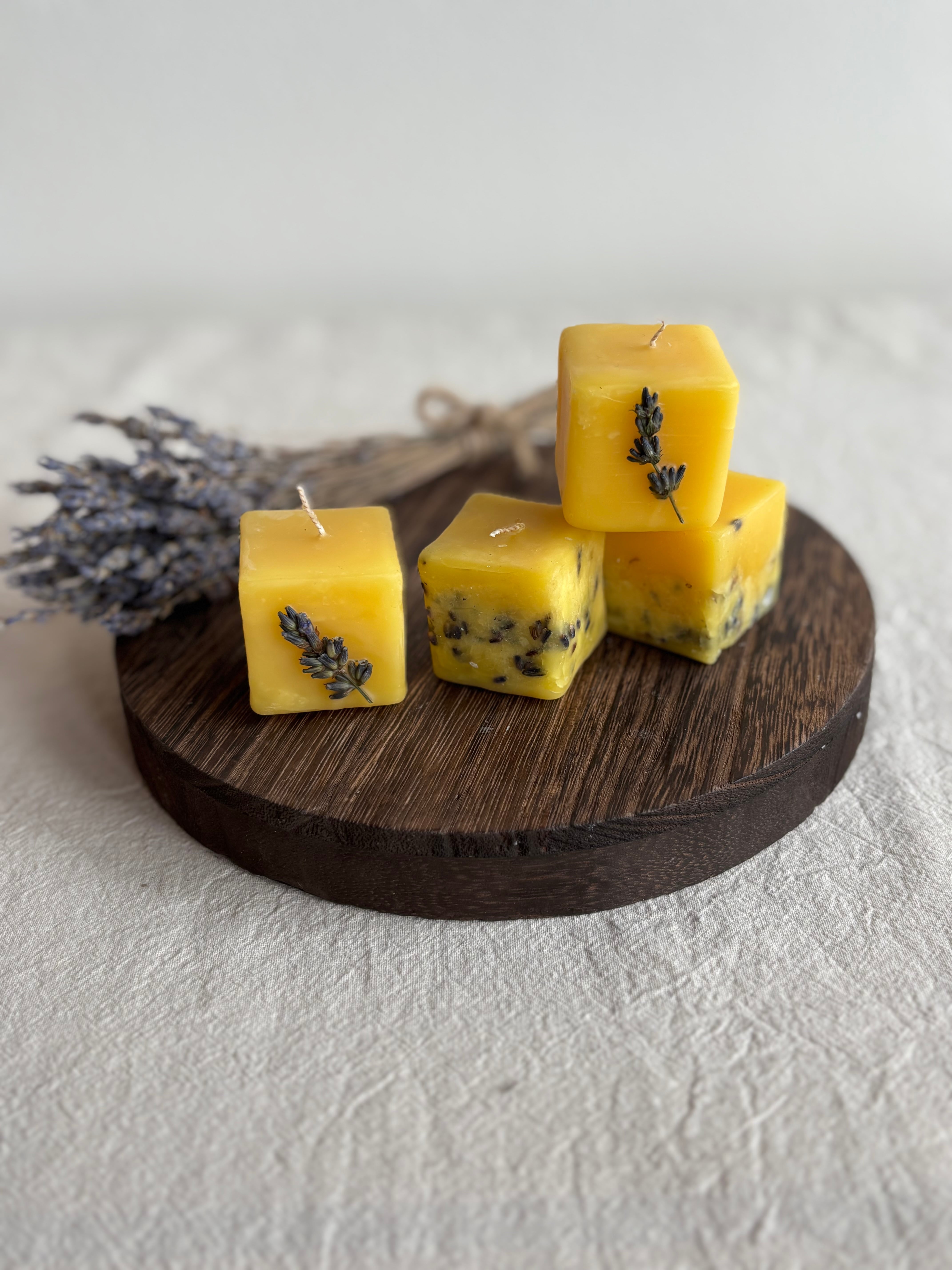 自然の恵みをそのままに仕上げた、ミツロウのキューブキャンドル。